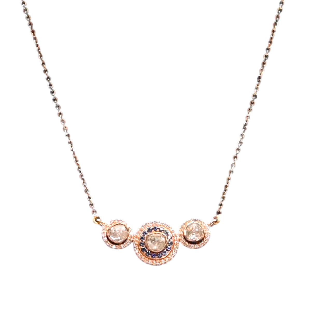 Three radiant diamond halos aligned in delicate refined harmony
